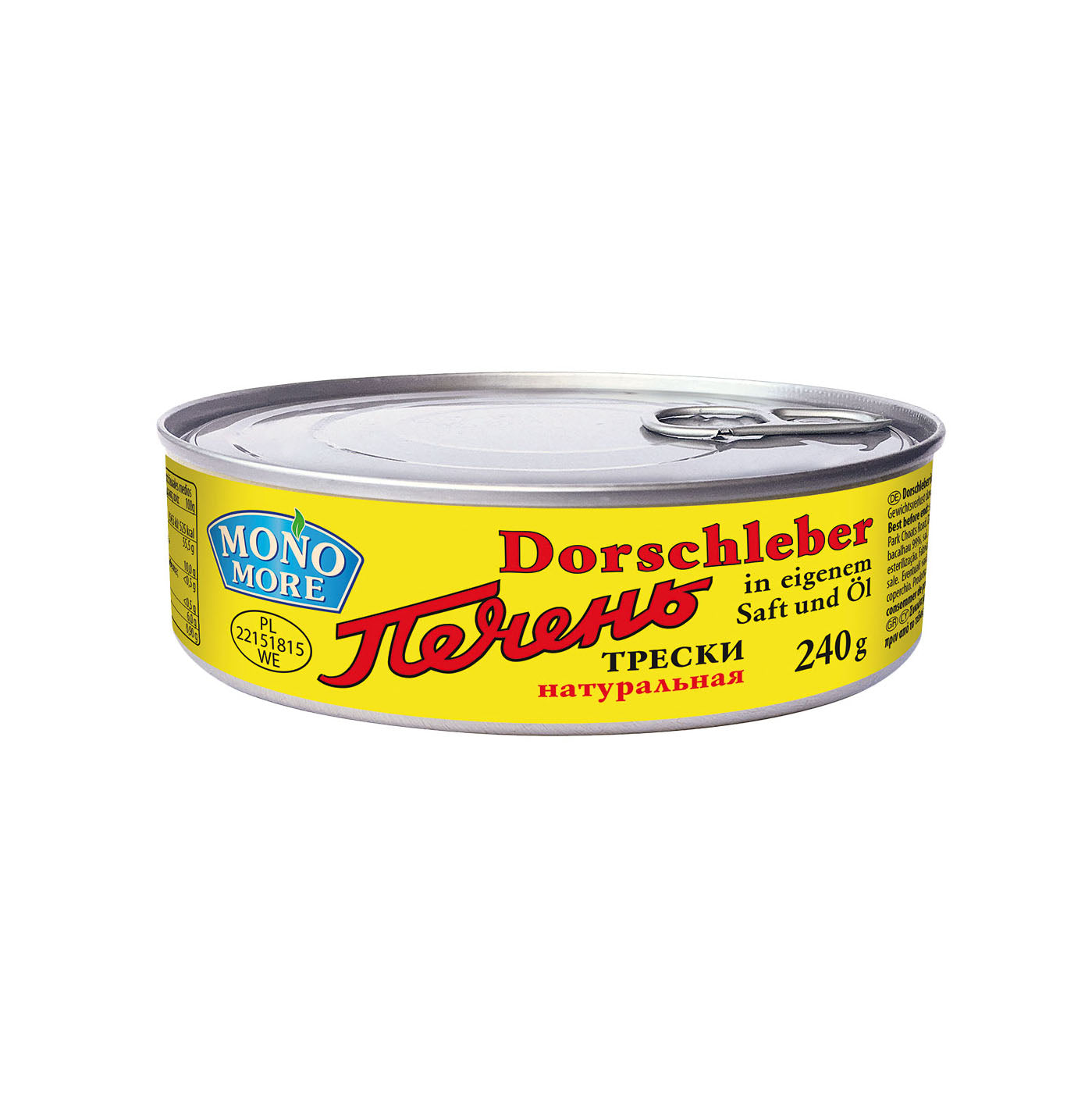 Состав: печень трески замороженная (Gadus morhua), соль, специи (душистый горошек, лавровый лист). Энергетическая ценность на 100 г продукта: белки - 4 г, жиры - 66 г, углеводы - 0 г. Пищевая ценность на 100 г продукта: 613 ккал.